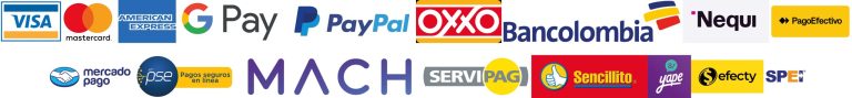 Por eso, te ofrecemos estos métodos de pago pensados para facilitar tu camino: OXXO, SPEI, Mercado Pago, híbrido (tarjeta + OXXO), PSE, Efecty, Nequi, Bancolombia, híbrido (tarjeta + Efecty), PagoEfectivo, Yape, Sencillito, Servipag, MACH